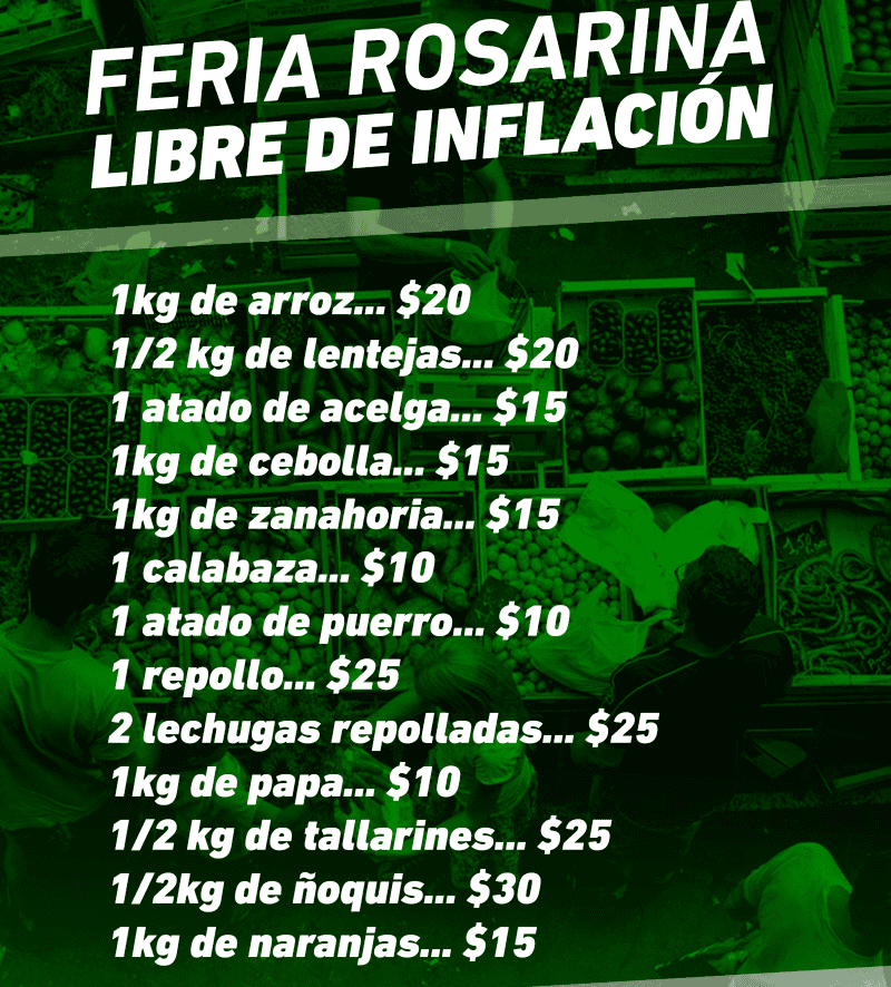 Con el arroz a 20 pesos el kilo, el paquete de fideos a 25 pesos y la papa a 10 pesos el kilo, entre otros, este miércoles desembarcó en la plaza Montenegro la primera Feria Rosarina Libre de Inflación.