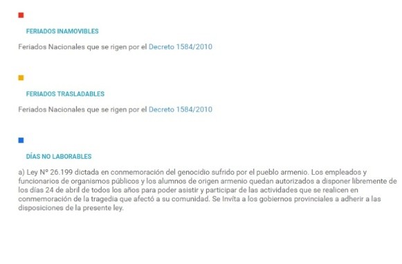 El calendario oficial publicado por el Ministerio del Interior de la Nación: