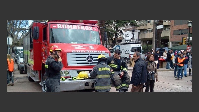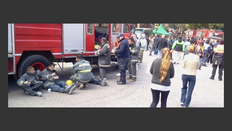 El secretario de Obras Públicas municipal, Omar Saab, que se esfuerza en apuntalar el edificio para evitar otro derrumbe, cruza el vallado. Se saca el casco amarillo de trabajo y se sirve una porción de pizza al paso. Refugiados detrás de otro autobomba, sentados en el piso y de espaldas a la tragedia, seis bomberos también almuerzan: comen comida caliente. Dos de ellos, con sus caras sucias y cansadas, ensayan una risa liberadora, ajena al lugar. En ese momento llegan los bolicheros y anuncian que sólo habrá actividad nocturnas hasta la 1.30, y muchos ni siquiera abrirán sus comercios. No hay clima de fiesta. Nadie necesita que le expliquen eso en la esquina de la catarsis.