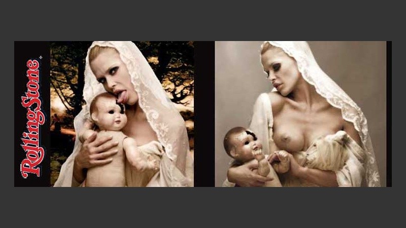 La fotógraf, que describió a Nazarena cómo "súper profesional" y "muy abierta", dijo haberse inspirado en una de sus pinturas favoritas, Virgen de Melún (1450), del pintor francés Jean Fouquet. "La idea era jugar con su exhibicionismo maternal y su puesta en escena, y mostrar algo de piel sin que fuera una foto típica de revista de hombres", dice Catalina.