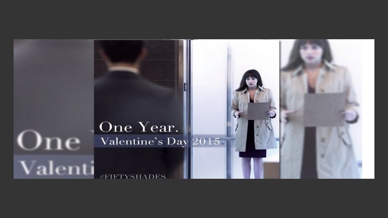 "Un año. Día de San Valentín 2015", dice la imagen compartida por la cuenta oficial de Facebook de Cincuenta sombras de Grey, la película.