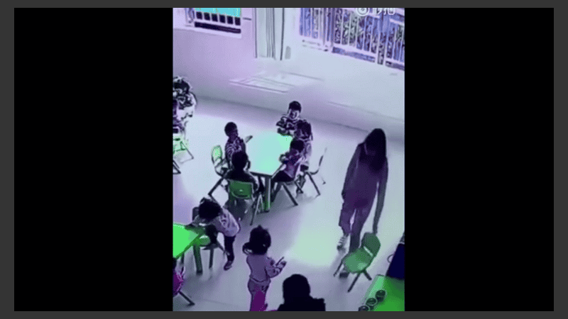 La maestra más mala del mundo vive en China y fue filmada cuando, en un jardín de infantes, primero empuja violentamente a una niña, y después le retira la silla a propósito mientras la menor se estaba sentando.
