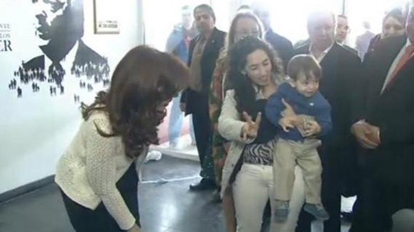 El niño, de un año y medio, fue retratado por los fotógrafos oficiales y pudo verse también en la transmisión de la Casa Rosada.