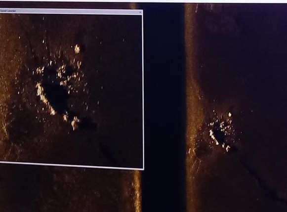 En la foto se observa una figura que coincide con el submarino desaparecido hace un año en las aguas del Atlántico Sur, cuando se dirigía desde Ushuaia a Mar del Plata.