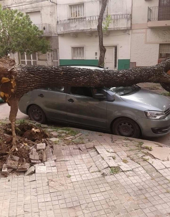 En Italia y 27 de Febrero, cayó un árbol sobre un vehículo: