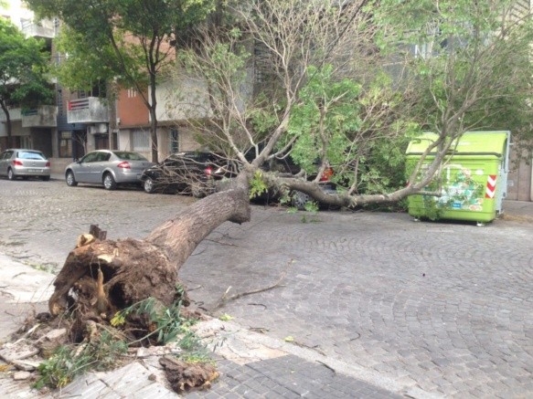 Un árbol cayó en calle Italia, entre 27 de febrero y Gálvez. Tw: @adrian_lg17