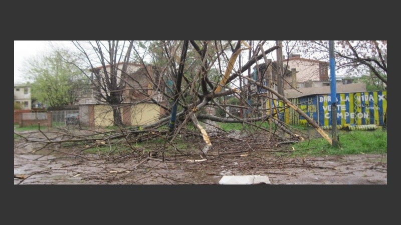 Entre las numerosas denuncias por árboles caídos se destaca uno en el Fonavi de Mendoza y Donado. Otro se precipitó sobre un auto en la zona de Crespo y Cerrito. Y otro en Necochea y 3 de Febrero, con cables eléctricos en el piso (ver imagen).
