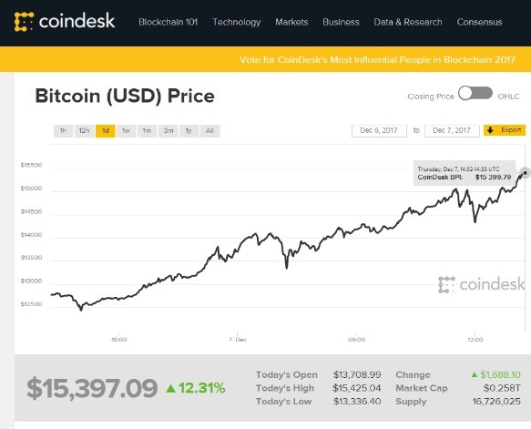 El porqué de tanto alboroto es el lógico a cualquier activo financiero que se aprecia con velocidad dentro del mercado de capitales; su valor. El precio de un Bitcoin al 7 de diciembre fue de us$15.397,79 dólares—llegó a un pico de us$17 mil—, cuando en enero de 2017 era de us$997,69 y más atrás, en diciembre de 2011 no superaba los us$3,19.