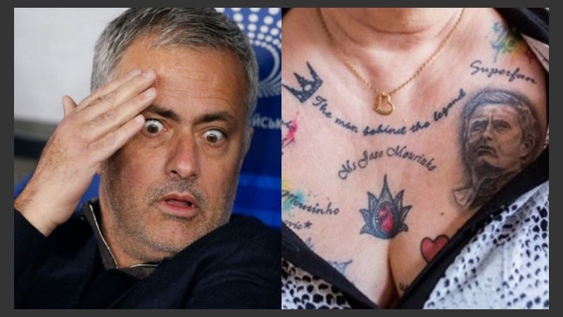 El último de los tatuajes, un corazón con el rostro de Mou, uno de los DT más populares del mundo.