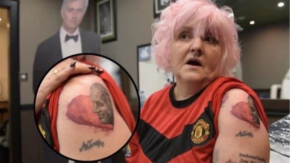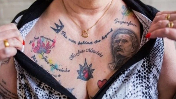 Una mujer de 60 años, fanática del entrenador José Mourinho, se hizo 35 tatuajes en su honor en todo el cuerpo.