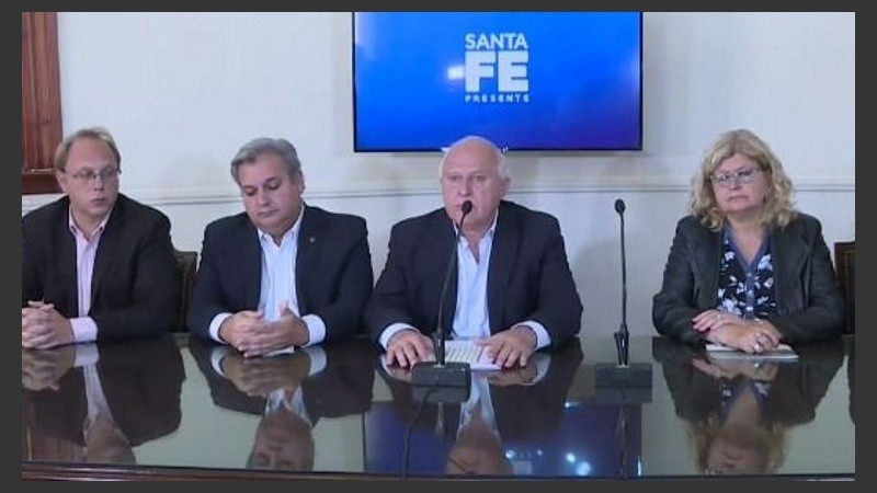 La conferencia de Lifschitz de este miércoles, rodeado de los principales ministros del gabinete, fue la respuesta a las duras críticas lanzadas este martes por casi todo el arco sindical tras conocerse el pago del aumento por decreto y el descuento de los futuros días de paro.