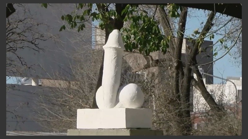Según mostraron las cámaras de De 12 a 14 (El Tres), debajo del monolito donde antes había una estatua colocaron un pene y dos testiculos de yeso.
