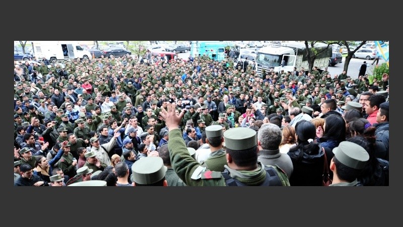 En la ciudad, donde los servicios no estaban interrumpidos, diferenciaron la protesta en dos grandes grupos, quienes reclaman por la rebaja de salarios a partir de un decreto nacional (situación que el propio gobierno ya dijo que será corregida) y por el otro el bajo sueldo que perciben quienes ingresan a la fuerza: de 3.400 pesos limpios después de los descuentos.