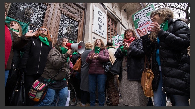 Las mujeres y organizaciones agrupadas en Ni una menos realizaron este martes un reclamo frente a la CGT de Rosario, también en Ciudad de Buenos Aires, para que esa central sindical escuche a sus afiliadas y defienda la ley por el aborto legal, seguro y gratuito.