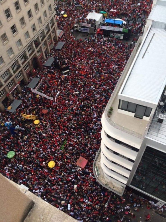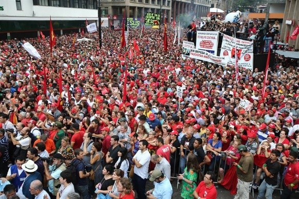 Ante una multitud en Porto Alegre, Lula se acercó a la capital del estado de Rio Grande do Sul para pronunciar un discurso en el cual confirmó su intención de volver a ser presidente "para que el país vuelva a caminar con la frente alta".