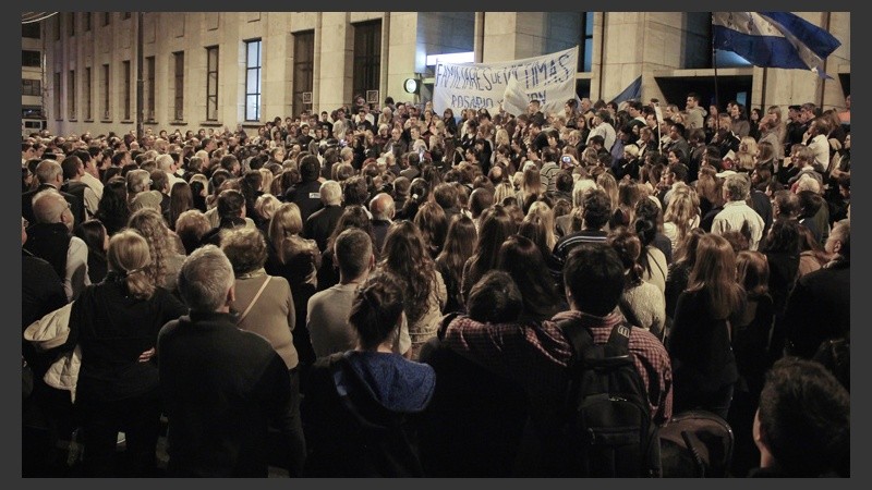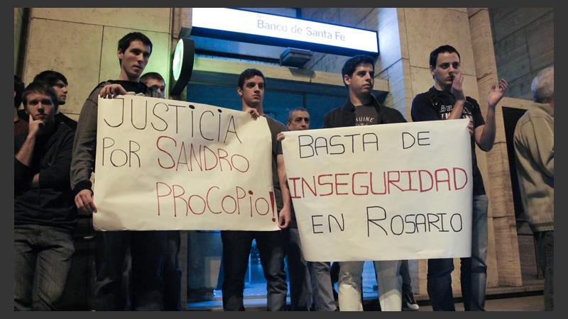 Con un sostenido aplauso y las estrofas del Himno Nacional un nutrido grupo de vecinos y familiares de víctimas de la inseguridad inició este lunes cerca de las 20 un acto de reclamo de seguridad y Justicia por el crimen del arquitecto Sandro Procopio. El acto se realizó frente al ingreso de los Tribunales provinciales de calle Balcarce e incluyó fuertes discursos para exigir el esclarecimiento de varios casos que generaron conmoción en Rosario y la región.