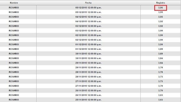 El nivel de alerta oficial aún está lejos, es de 5 metros, y el de evacuación de 5,3. Sin embargo, la marca actual supera en más de 70 centímetros los 3,24 metros de altura media para diciembre, según datos del INA. Ese ente nacional además pronostica una marca de 4,26 para el miércoles 9 de diciembre y una de 4,50 para el próximo 14. Es decir, medio metro más en menos de diez días.