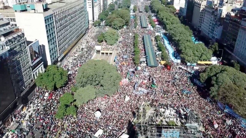 Un amplio arco de sectores opositores al gobierno nacional -sindicales, políticos, organizaciones sociales, de derechos humanos y la cultura-, protagonizaron este viernes a la tarde un masivo acto frente al Obelisco porteño para rechazar las negociaciones con el Fondo Monetario Internacional (FMI). Organizadores señalaron que hubo más de un millón de personas.