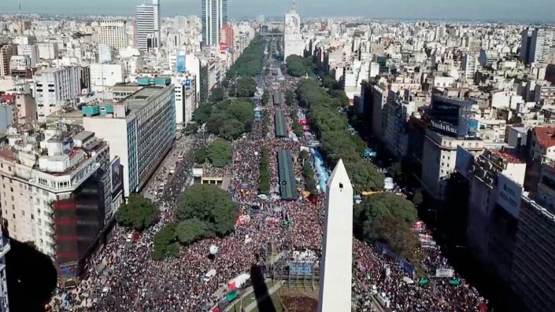 Pasadas las 15, los organizadores celebraron la convocatoria y afirmaron: “Somos un millón y medio de personas para decirle no al FMI”.