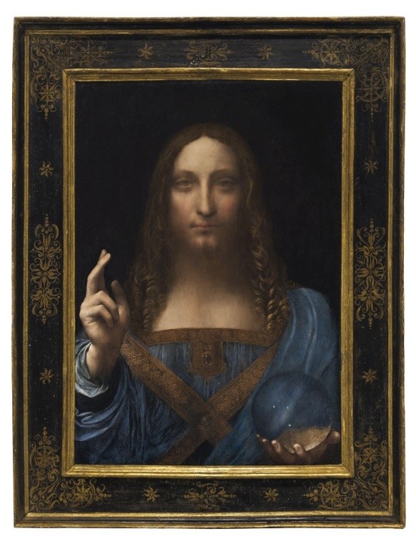 "Salvatore Mundi" es un óleo que representa a Jesucristo y data del 1500. Fue redescubierto en 2005, después de un largo tiempo en el que se creía destruido, lo que supuso el primer hallazgo de una pintura de Da Vinci desde 1909, y lo que desató muchos debates en torno a su autenticidad.