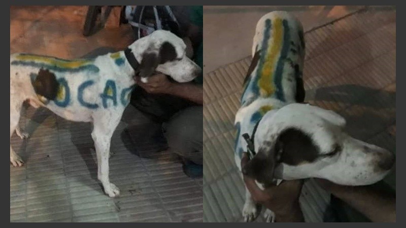 En la previa a la histórica final que disputarán River y Boca por la Copa Libertadores, la localidad santafesina de San José de la Esquina está conmocionada por el acto que cometió un hincha xeneize. Se trata de uno de los carniceros del lugar, quien pintó con aerosol a su perro con los colores azul y oro y también le agregó la palabra "Boca" en una parte del cuerpo del can.