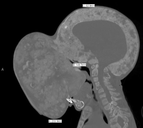 Este trastorno le afectó en extremidades y en el cráneo desde los 2 años, pero a partir de los 11 un bulto al lado de la nariz empezó a crecer de forma excesiva, lo que dificultaba la respiración y alimentación del menor hasta provocarle una desnutrición extrema.