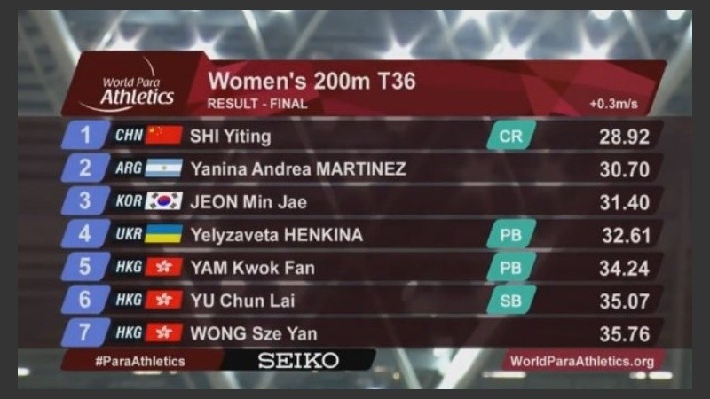 La rosarina Yanina Martínez obtuvo la medalla de plata en la final de los 200 metros T36 del Mundial de altétismo que se lleva a cabo en Londres.