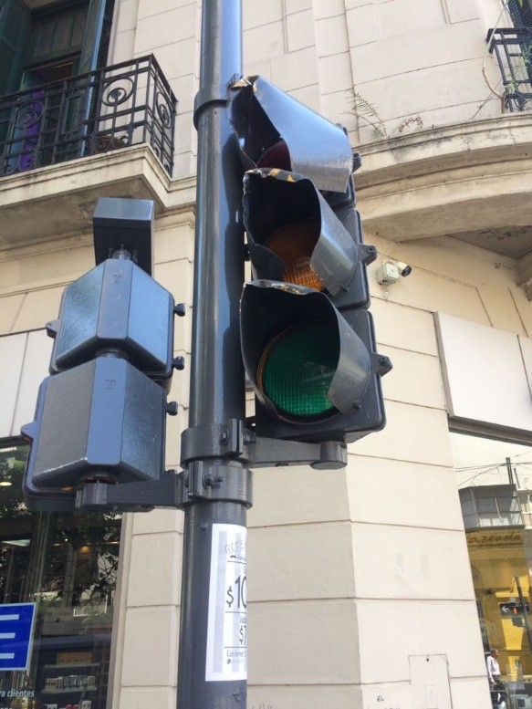 Según relataron los semáforos por Santa Fe estaban intermitentes en amarillo, los de Presidente Roca ni siquieran funcionaban. Uno de ellos estaba directamente dañado físicamente y apuntado hacia cualquier lado. La misma situación con los correspondientes a peatones.