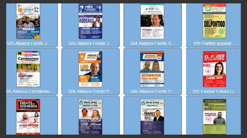 La información puede consultarse a través de la dirección www.electoral.gov.ar/boletas.php#boletas, y allí los ciudadanos podrán visualizar cómo son las papeletas que mañana estarán dispuestas en los cuartos oscuros de los lugares de votación. Aquí, las de Santa Fe.