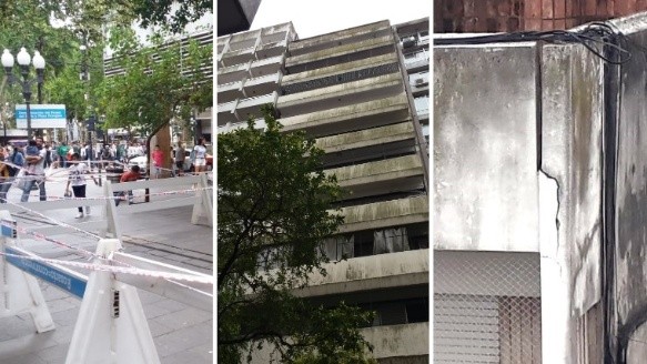 La noticia corrió en horas de la siesta, cuando todos los que pasaban por el cruce con calle Paraguay observaban hacia arriba para divisar una clara grieta en el último piso (14º) de la torre ubicada en Córdoba 1490.