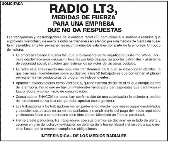 El titular del Sindicato de Prensa Rosario, Edagrdo Carmona, manifestó su preocupación por la emisora rosarina, con atrasos salariales y de aportes. "Es una situación dramática", dijo sobre la continuidad. También cuestionó cesantías con "tufillo a censura" en el medio público