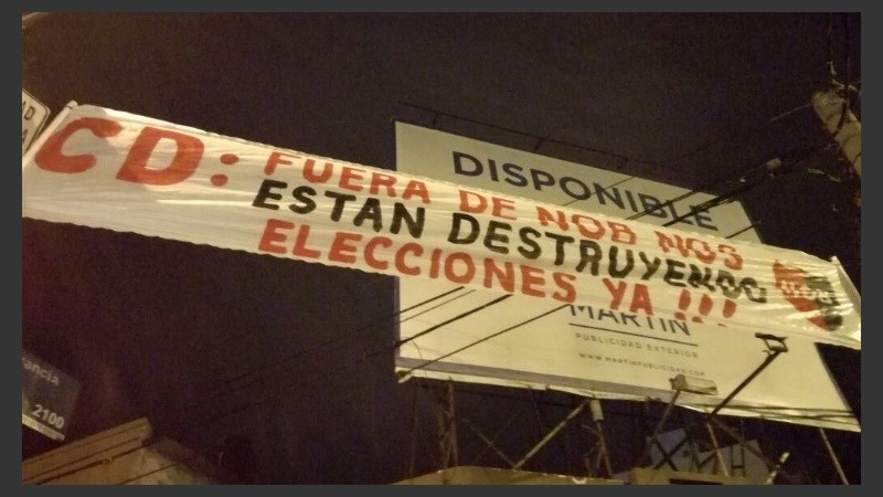 "CD: Fuera de NOB. Nos están destruyendo. ¡Elecciones ya!", indican los carteles.