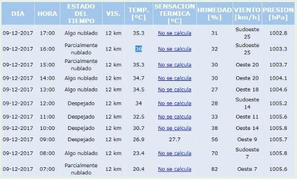 En las primeras horas del día, el termómetro ya trepaba a los 23,7 grados. La humedad era del 70 por ciento y el viento soplaba del sudoeste a 7 kilómetros por hora.