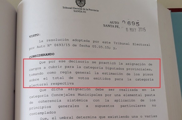 Los partidos perjudicados por esta decisión denunciaron, ya desde el viernes pasado que cerró el escrutinio, que el cambio de criterio encubre “discrecionalidad política”. Citaron, además, fallos del propio Tribunal en 2015 que define usar el piso sobre votos válidos cuando se trata de un partido con lista única (para no generar un efecto ley de lemas); documentos que Rosario3.com reproduce en esta nota.
