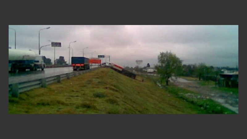 El más espectacular de los incidentes se registró en Circunvalación a la altura de Cerrito. Allí, un camión Volkswagen que había terminado de descargar en el puerto de Rosario y estaba emprendiendo el regreso a Salta perdió el control –producto de la humedad del pavimento– rompió el guardarrail y terminó colgado en el talud de contención al puente de la avenida. El camionero no sufrió heridas de gravedad, aunque no dejó de mostrar su preocupación por el hecho.