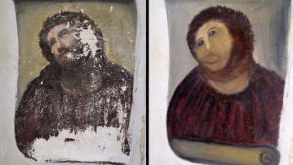 Un antecedente cercano de un hecho de gran repercusión que terminó con una obra de arte dañada, se registró en 2012, cuando una anciana intentó restaurar una pintura y la dejó irreconocible.