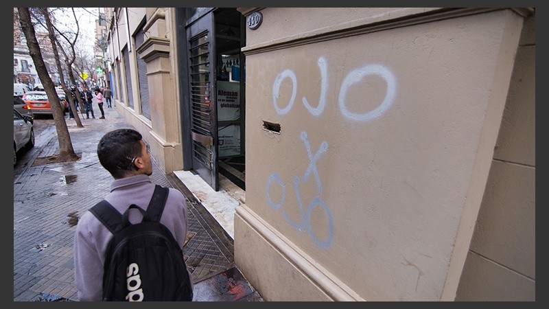 “Ojo por ojo”, “Pinola traidor”, son las frases que desde esta mañana, según informó el periodista Fernando Carrafiello se pueden leer en la fachada del Alemán junto al símbolo dólar.