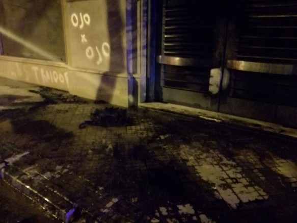 El llamado a los bomberos por las cubiertas quemadas ingresó alrededor de las 2 de la maadrugada y esta mañana se podían ver los restos negros de las gomas chamuscadas frente a la puerta de calle España al 400.