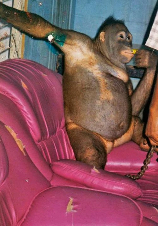 Una orangutana tardó 10 años en recuperarse del trauma que le provocó haber sido explotada sexualmente en un burdel de Indonesia, hace 15 años atrás. El animal era rasurado y maquillado para ser violado por hombres que pagaban por ello. Vivió encadenada y encerrada en el lugar hasta su rescate.