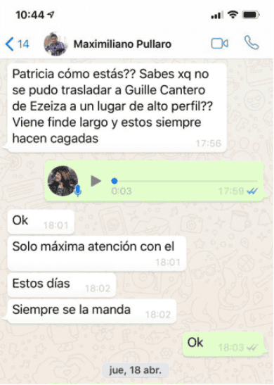 En el audio de ese intercambio, Bullrich le responde a Pullaro: "Dame unos días más que estamos con una operación".