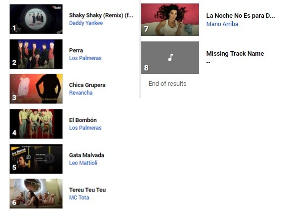 En lo que hace a canciones, las métricas dan entre los ocho primeros a dos artistas santafesinos con tres canciones. Primeros, sacando las canciones de artistas internacionales, aparecen Los Palmeras con Perra y El Bombón y detrás el león santafesino con su ya clásico Gata Malvada.