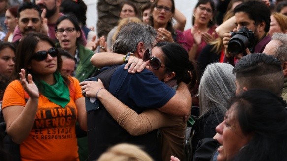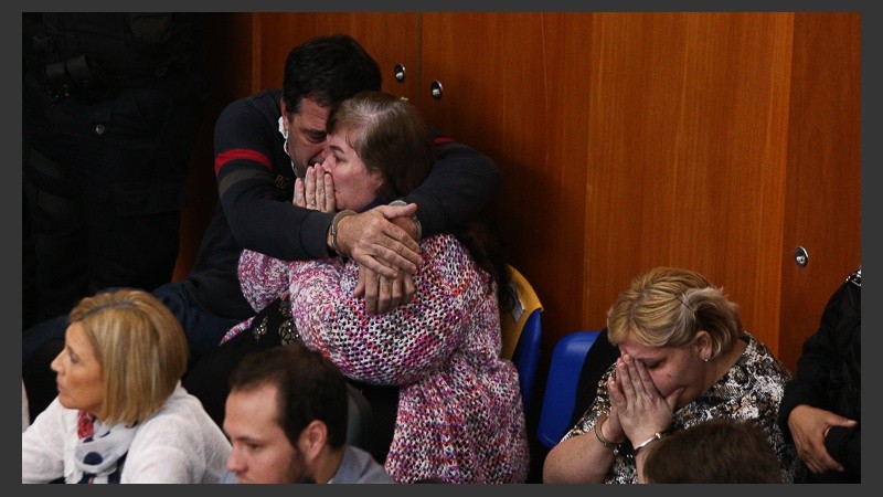 Mientras tanto, adentro de la sala, los acusados y sus abogados se abrazaban, una imagen que potenciaba la indignación de quienes esperaban afuera y quienes miraban la transmisión en vivo que realizó De 12 a 14. .