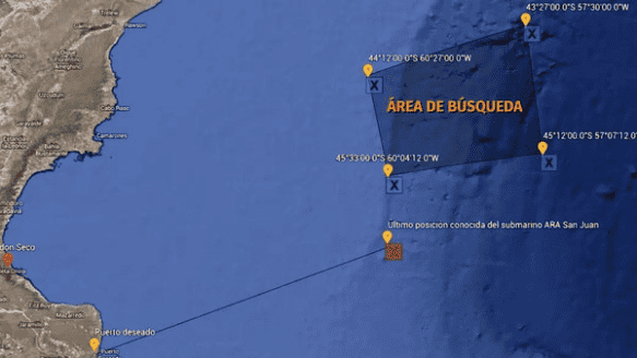 Hasta este sábado a la tarde se había rastrillado el 80% del área de búsqueda del ARA San Juan (por la mañana era de 50%). El último contacto de radio se dio el pasado miércoles, cuando avanzaba por la altura de Puerto Madryn y sin que reportara problemas de navegación.