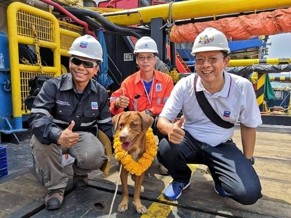 Trabajadores de una plataforma petrolera Chevron Thailand Exploration and Production rescataron a un perro a 217 kilómetros mar adentro en el Golfo de Tailandia. El animal estaba nadando en el medio del mar y se dirigió hacia ellos. Lo nombraron "Boon Rod", que significa sobreviviente.