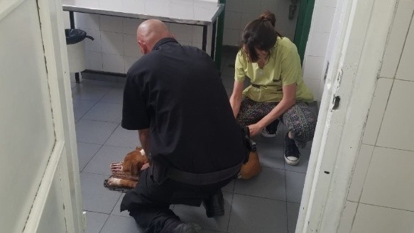 Desde la dirección del Instituto Municipal de Salud Animal (Imusa) se pusieron a disposición para curar al perro y los policías lo trasladaron en una patrulla.