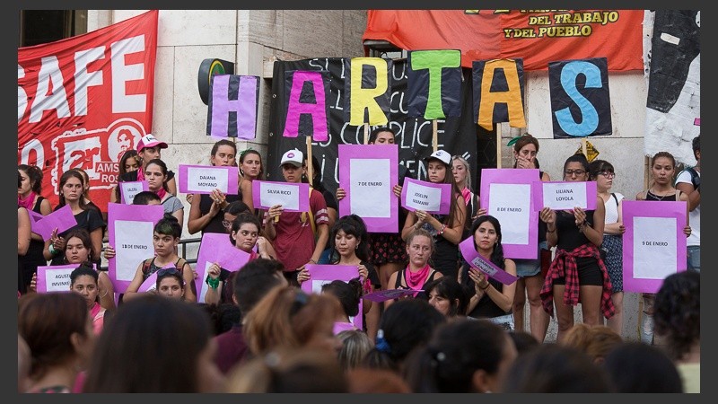 En la concentración se observaron pancartas con leyendas como “Ni Una Más, emergencia nacional ya. Hartas. Nos plantamos en Tribunales”; “Si la justicia calla y oculta es cómplice. Ni Una Menos”.