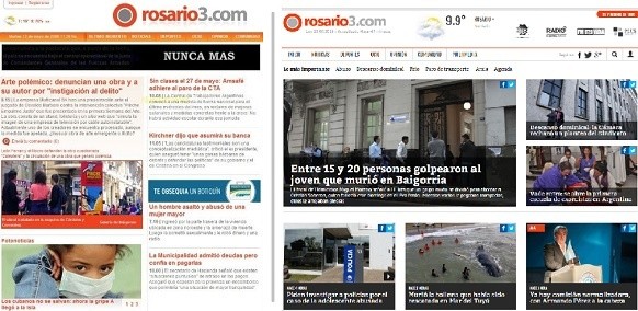 Compromiso con la actualidad, de eso se trata aún Rosario3.com. Eso no cambió pero sí muchas otras cosas. La dinámica laboral mutó con la irrupción de las redes sociales y el peso creciente de la imagen. Pero no sólo eso. Esta Rosario de hoy no es la misma que aquella. Los narcos y los sicarios eran propiedad de otros países o de las películas. Las denuncias por los vínculos de la Policía con el delito eran marginales y se llamaban "cajas negras". Los Monos estaban en el zoológico (y sólo para unos pocos eran una banda de zona sur que peleaba con Los Garompa). Pimpi Caminos y Pillín Bracamonte daban notas en programas de televisión negando violencia en las barras. Hugo Tognoli ni siquiera trabajaba en la ex Drogas Peligrosas. Los temas fuertes de esos primeros pasos de Rosario3.com hoy serían de “color”. Como el porqué de los incendios recurrentes en las islas. Allí está también –en un archivo disperso, una de las deudas de este medio- el anuario multimedia de 2009 para comparar el espesor de la agenda política y policial de entonces con la actual. La violencia en las calles de la ciudad no nació en esta década pero se multiplicó de una manera difícil de digerir. Pasamos de contar un crimen cada 4 días a uno cada 36 horas. Bastaba con el nombre de la víctima para recordar el caso y seguirlo. Hoy se apilan. Es cierto que el periodismo sirve para reflejar esas transformaciones, para pensarlas, pero la verdad es que sobrepasa. En esta década cubrimos también la granizada de 2006, la inundación de 2007, y otras tormentas intensas. Nada marcó tanto como la tragedia de calle Salta en agosto de 2013, con su continuidad en el Parque Independencia. Días después de la explosión que alcanzó y destruyó su departamento, Javier Di Napoli volvió a la redacción con un bolsito, un cepillo de dientes y sin hogar. Lo que escribimos, lo que contamos, también nos pasa. Y aún aquellos temas que reaparecen cada año como un loop llegan con una particularidad. Se repiten de forma única. Ya no hacemos Rosario3.com sobre papeles que nadie ve, ni la redacción es un pasillo; Twitter y Facebook se integraron al trabajo, pero seguimos contando noticias. Lo que pasa en el día. Y tratamos también de buscar buenas historias, distintas, aunque la corriente empuje hacia otro lado. Compartirlo rápido pero con cuidado, porque en la era de la velocidad a veces es mejor estar bien parado, como aquella carpeta oficio de los “números cero” que sobrevivió a esta década digital.