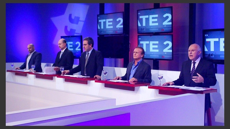 Después del debate entre candidatos a intendentes de Rosario de la semana pasada, este sábado fue el turno de los aspirantes a la gobernación. Fue una segunda y saludable experiencia, aunque de mayor a menor en cuanto a intensidad. Con mucho picante en el inicio, algo acartonado hacia el final, los cinco hombres (esta vez no hubo mujeres) expusieron su visión sobre la provincia en los estudios de Televisión Litoral. Octavio Crivaro (Frente de Izquierda), Miguel Del Sel (PRO), Omar Perotti (Frente Justicialista para la Victoria), Miguel Lifschitz (Frente Progresista Cívico y Social) y Oscar Martínez (Frente Renovador) señalaron problemas y plantearon propuestas sobre cuatro ejes temáticos: seguridad, obra pública, educación y política productiva. Pocos cruces al aire y muchos en las redes sociales condimentaron el encuentro.