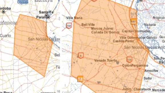 Por otro lado, el organismo mantuvo este lunes una advertencia por posibles fenómenos intentos que afectan a la región del centro y sur santafesino.
