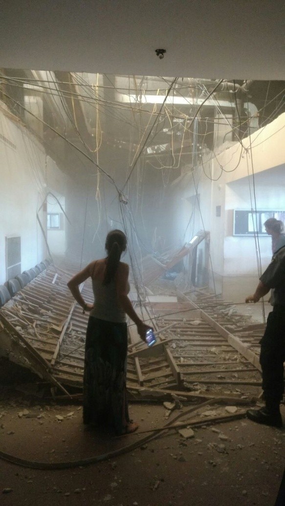 Según precisaron fuentes policiales, el cielo raso es el de los juzgados laborales, ubicados sobre avenida Pellegrini. El abogado Miguel Carreras contó en De 12 a 14 (El Tres) que estaba en la parte de mesa de entradas del edificio cuando escuchó "un ruido desgarrador".